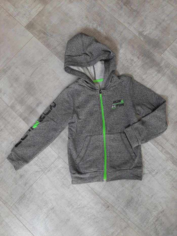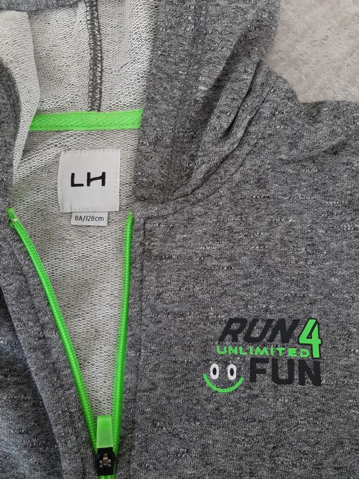 Peu porté, 1ere main Gilet avec capuche, fermeture zippée, 2 poches Taille 8 ans