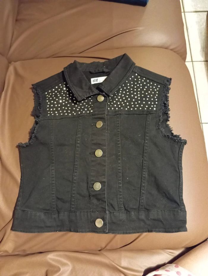 Veste en jeans sans manche noire en brillant H&M 152 cm - photo numéro 1