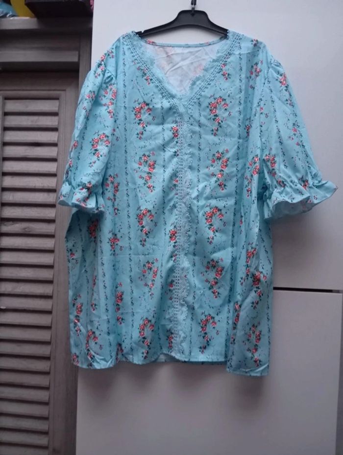 Tee-shirt Bleu motif Roses 4XL - photo numéro 1
