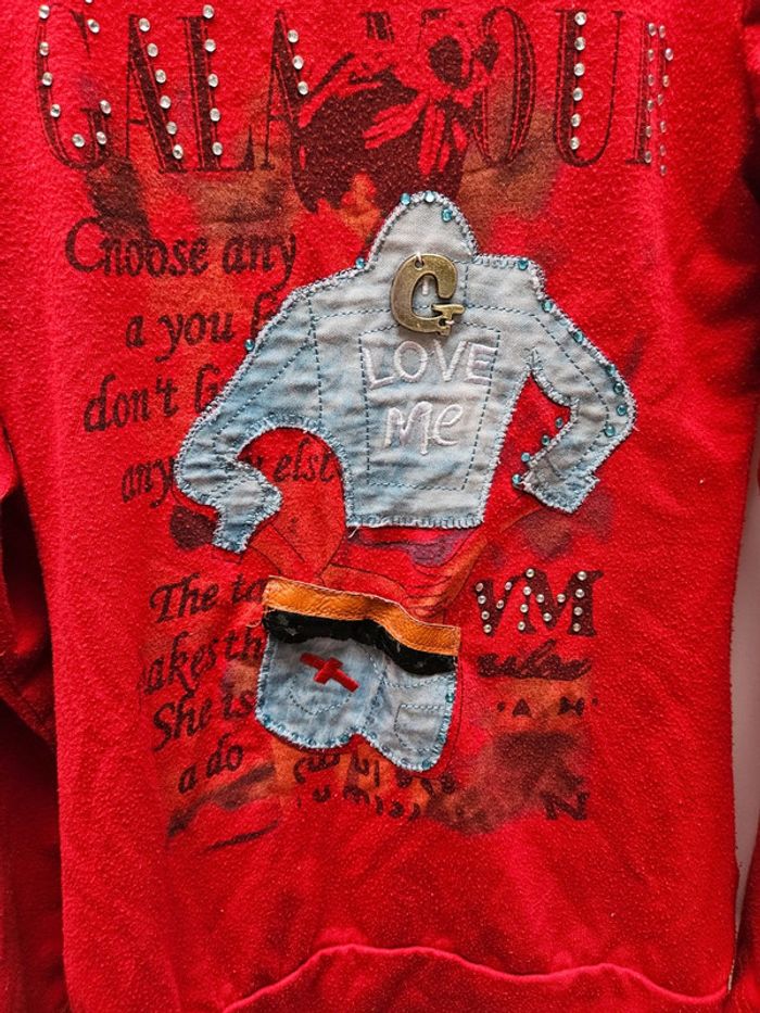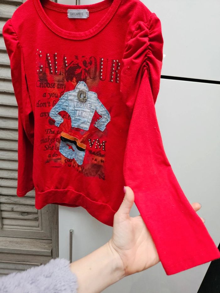 Pull léger manche longue rouge porté Chicaprie 10 ans