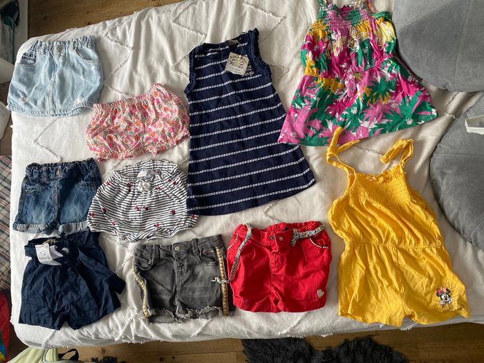 Lot vêtement été bébé fille 18 mois . Robe , combi short , short jupe Zara 18/24 . Différente marque kiabi , Zara , sergent major , Disney , creeks , 2 article neuf avec étiquette . #lotvetementbebefille #bebefille18mois #lotvetementfille18mois #vêtementété