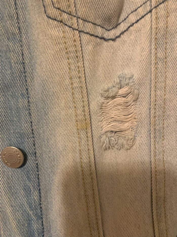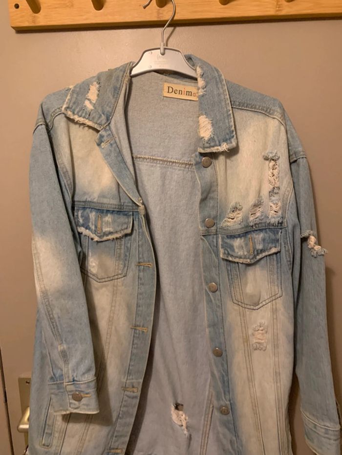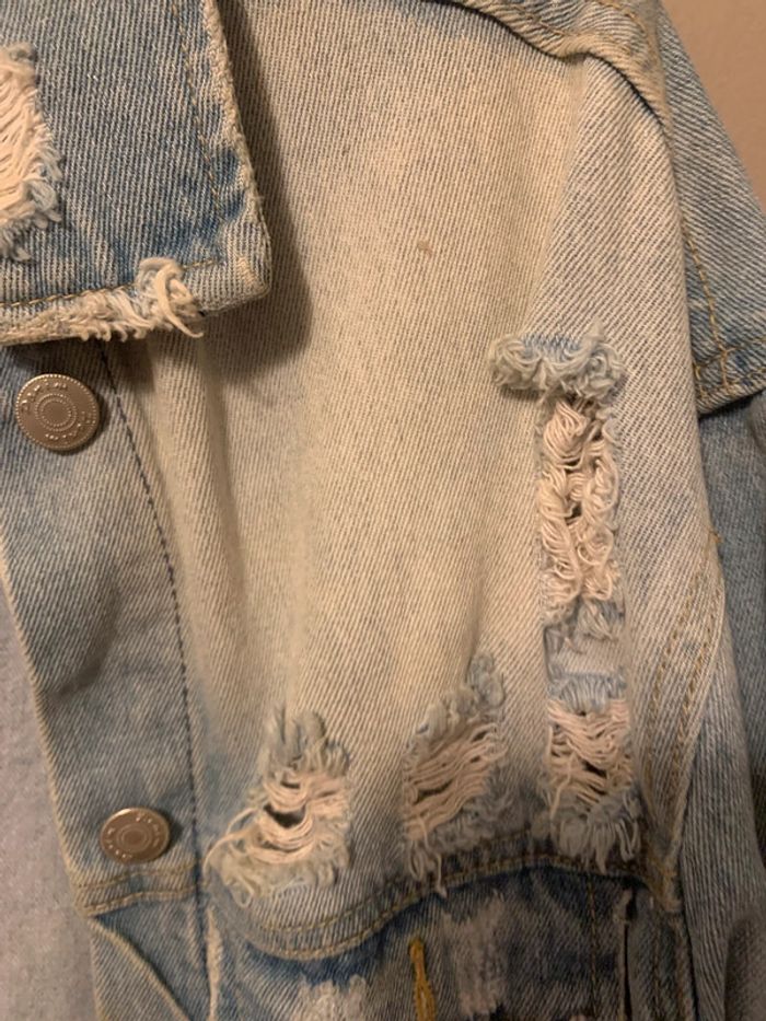 Femme en jean femme . Taille s. Veste à trou . En états des photos. #vesteenjeans #vestefemme #vesteenjeantroué