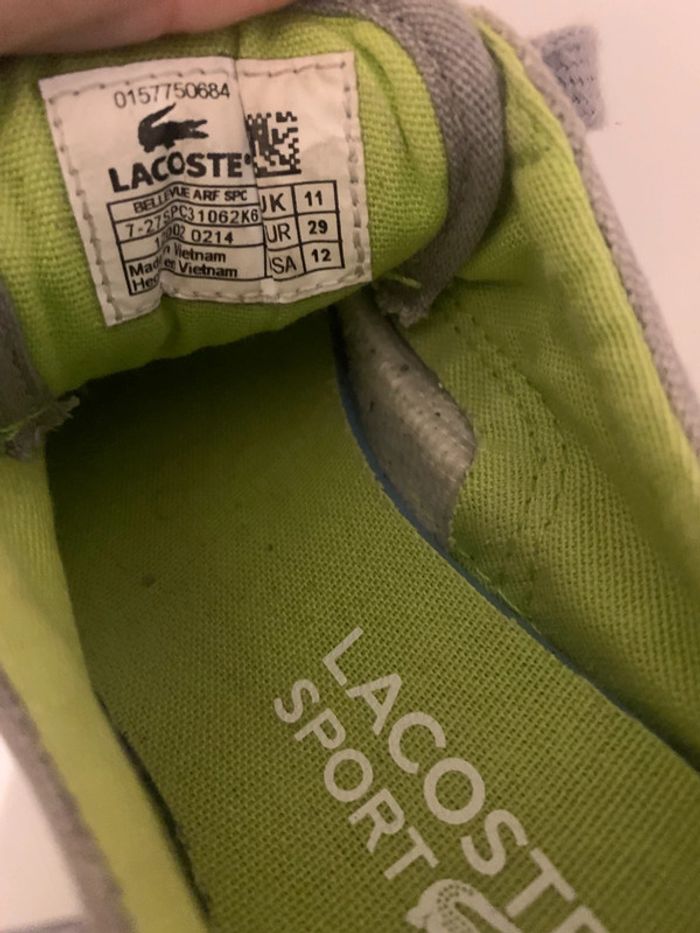 Très jolie paire de basket Lacoste enfants . Je connais pas la provenance. Taille 29 , mais taille petit . #lacoste #basketlacoste #basketlacosteenfant #basketlacosteenfantgarcon . À nettoyer.