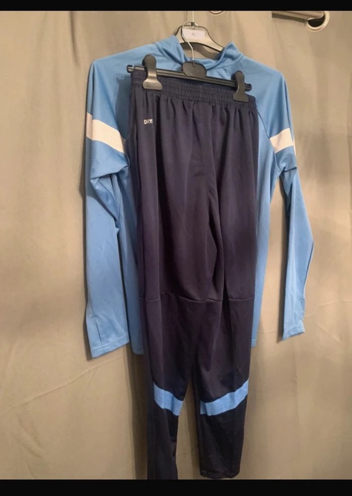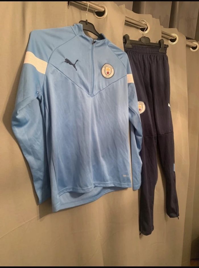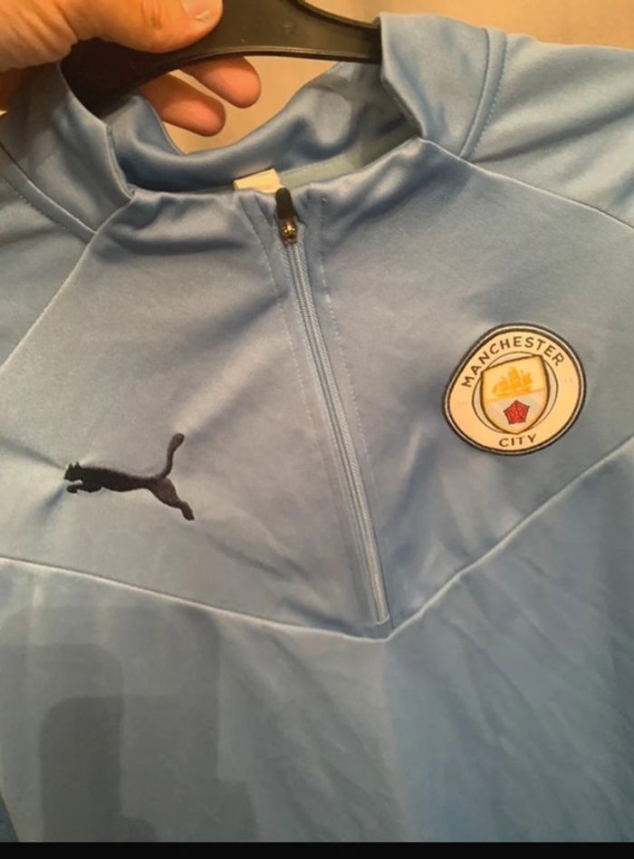 Survêtement de foot Manchester city. Taille française indiqué S. Je connais pas la provenance. En états des photos . Couleur bleu marine et bleu clair . #survêtement #survetementfoot #manchestercity #jogging #joggingfootball #survetementfootball #ensembledefoot #ensembledefootball