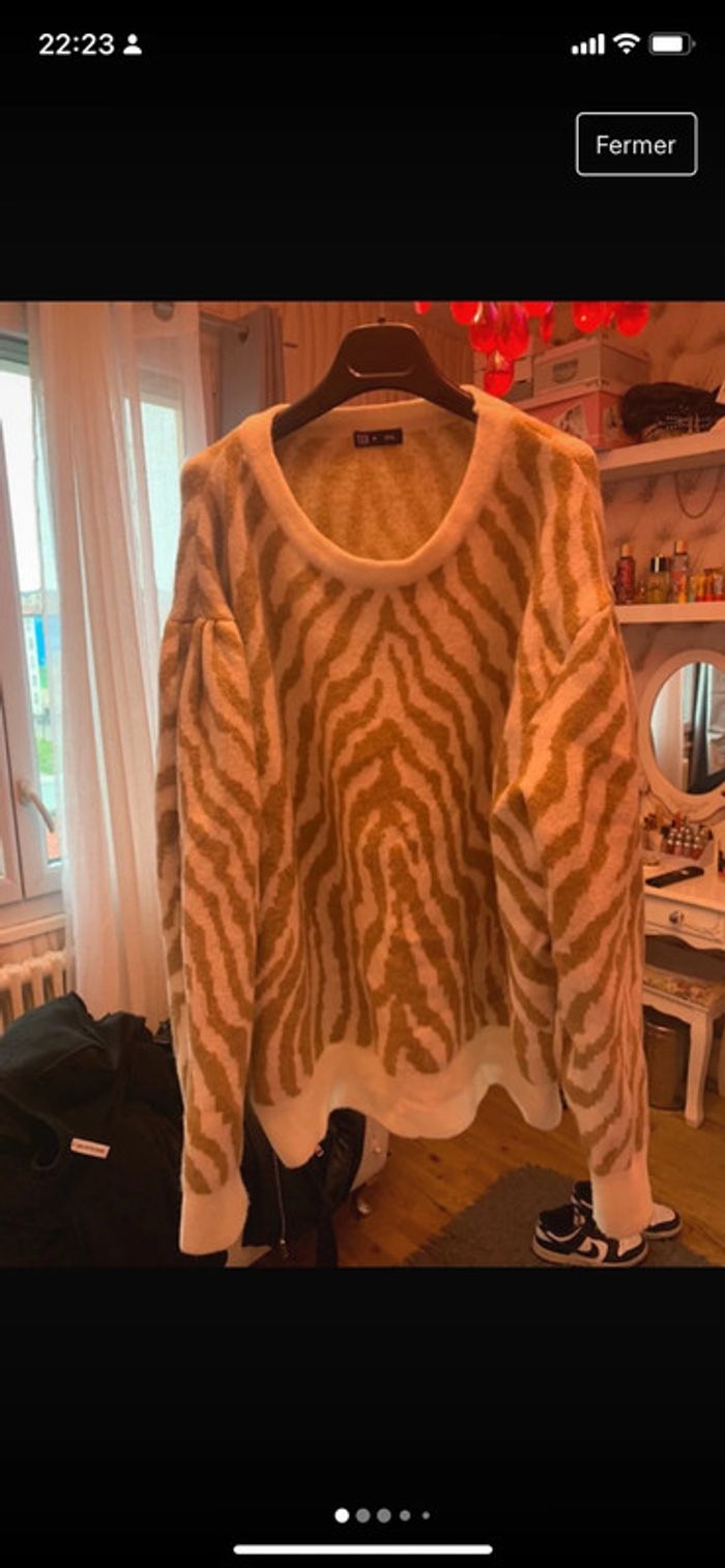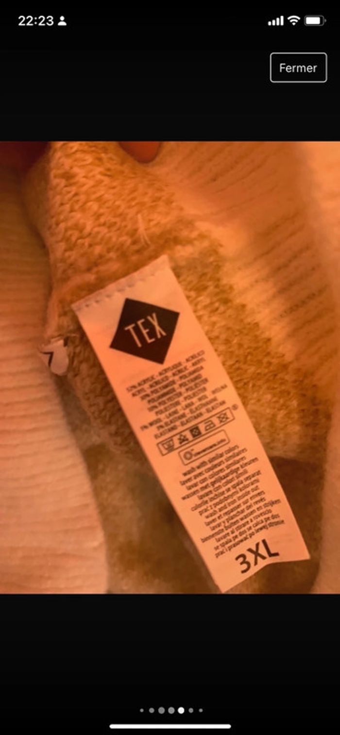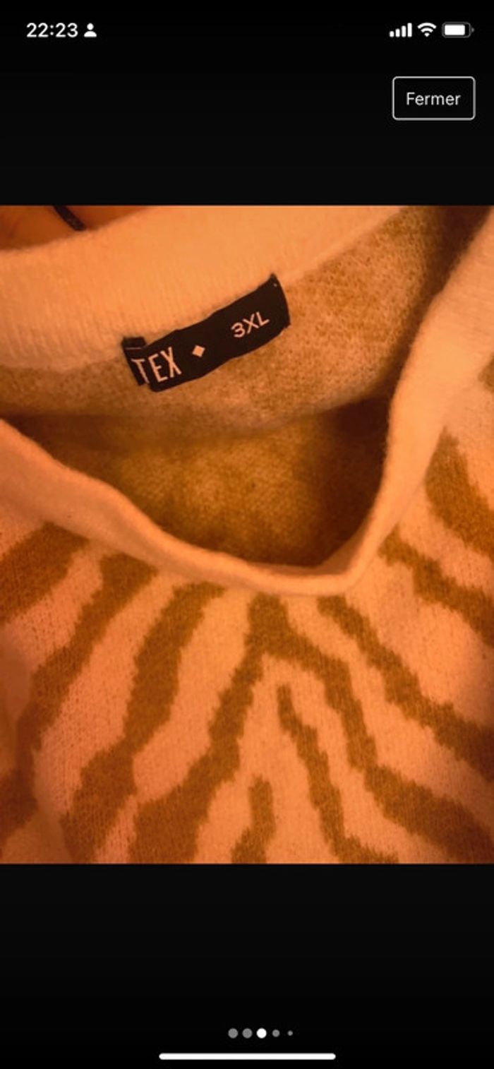 Très jolie pull style laine. Taille indiquée 3 xl mais taille grande, convient pour du 50 selon morphologie . Porter une fois 10 minutes donc neuf. Prix ferme . Couleur beige Marron clair. #pullhiver #pullhiverfemme #pullgrandetaille #pulletendancefemme