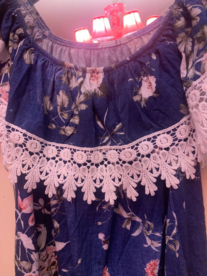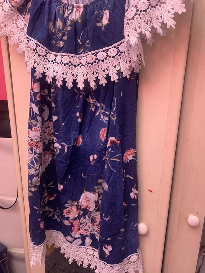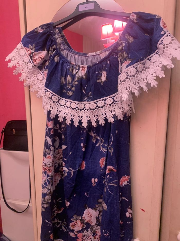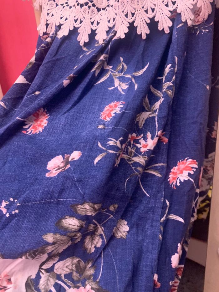 Très jolie robe fleurie . Aucune indication taille . Convient pour du M , selon morphologie .