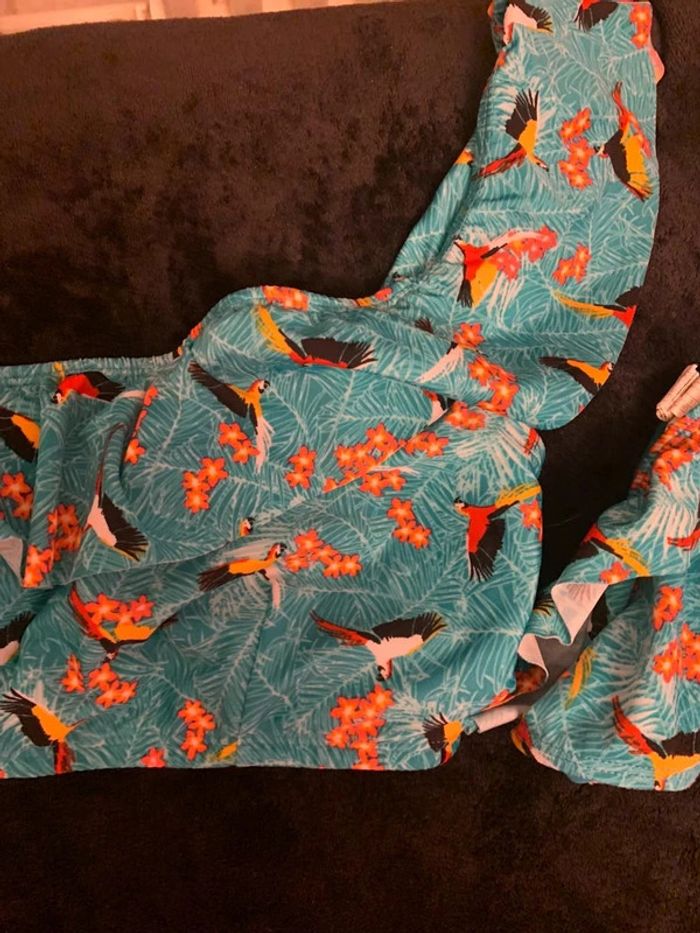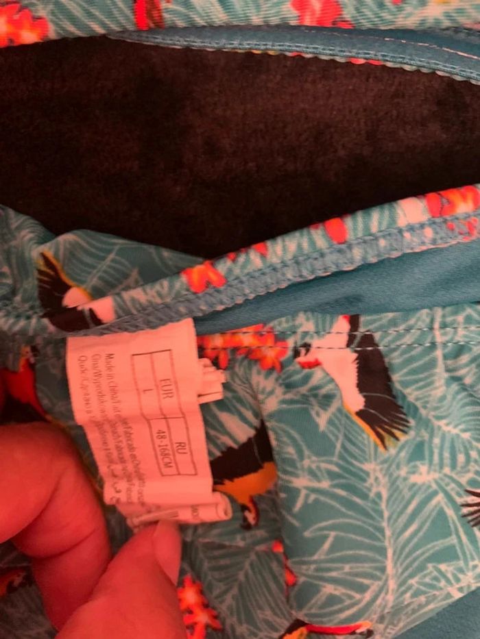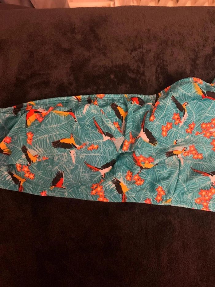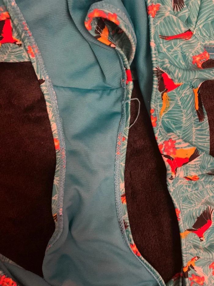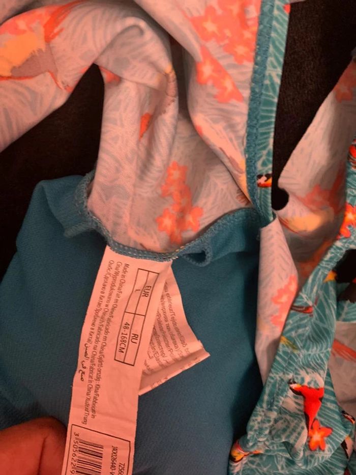 Très jolie maillots de bain 2 pièce , Couleur vert / fleurie . Taille L . Peut porté. Une manche / une bretelles pour le haut .