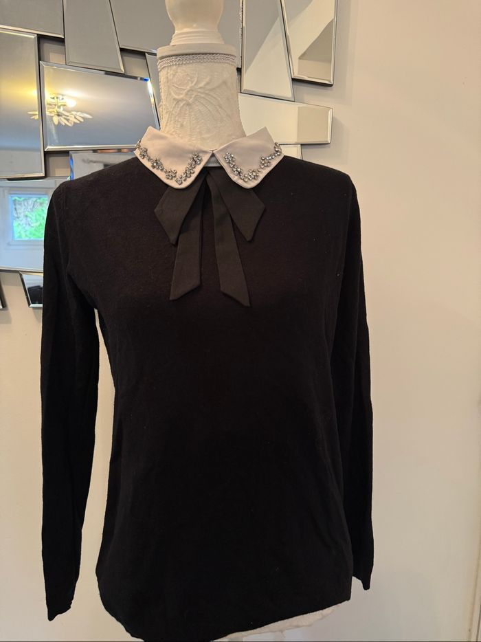 🌸🌸 Idéal pour un look chic 🌸Taille : S = 36 🌸 Couleur : noir avec col blanc et bijoux strass 🌸 La couleur blanche du col est un peu terni