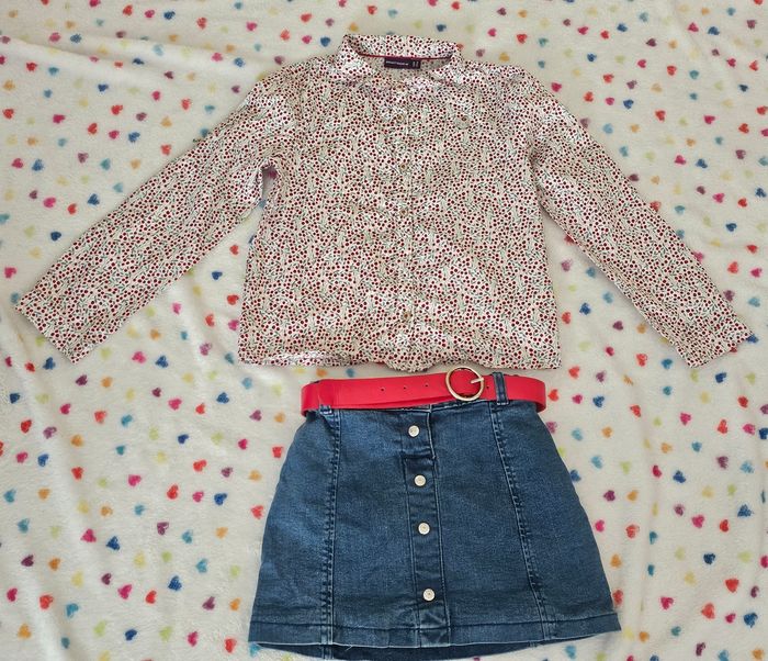 Joli ensemble de la marque sergent major taille 8 ans haut 6 ans jupe . A signaler il manque un bouton a la chemise Pour voir tout mon 8ans tapez dans la barre de recherche #8ansfillelili29217