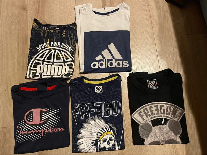 Lot tee shirt manches courtes marque freegun, champion, adidas et puma