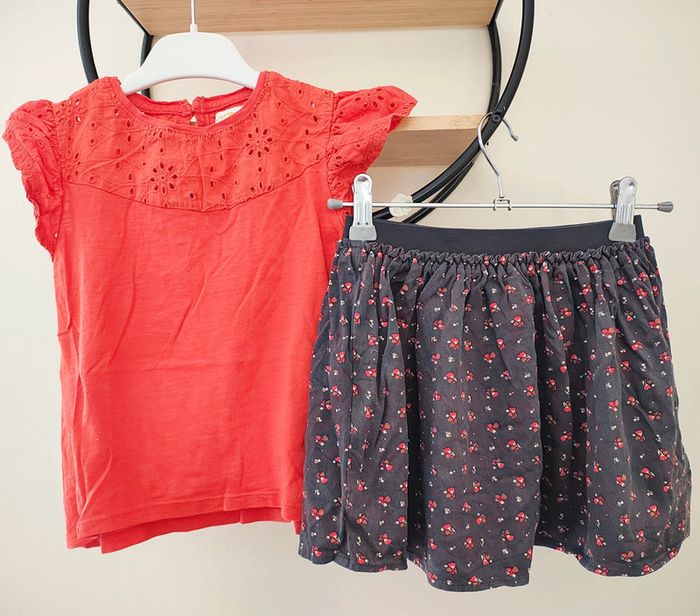 6 mois ensemble été teeshirt Vertbaudet et jupe Gémo