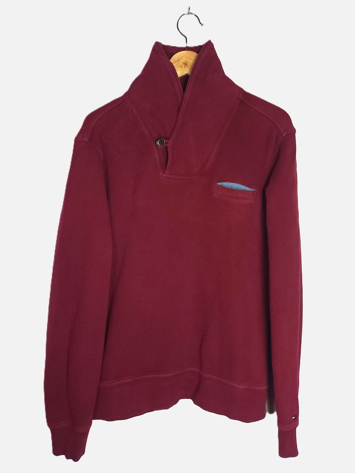 Pull Col Boutonné Tommy Hilfiger Bordeaux - Taille M - photo numéro 1