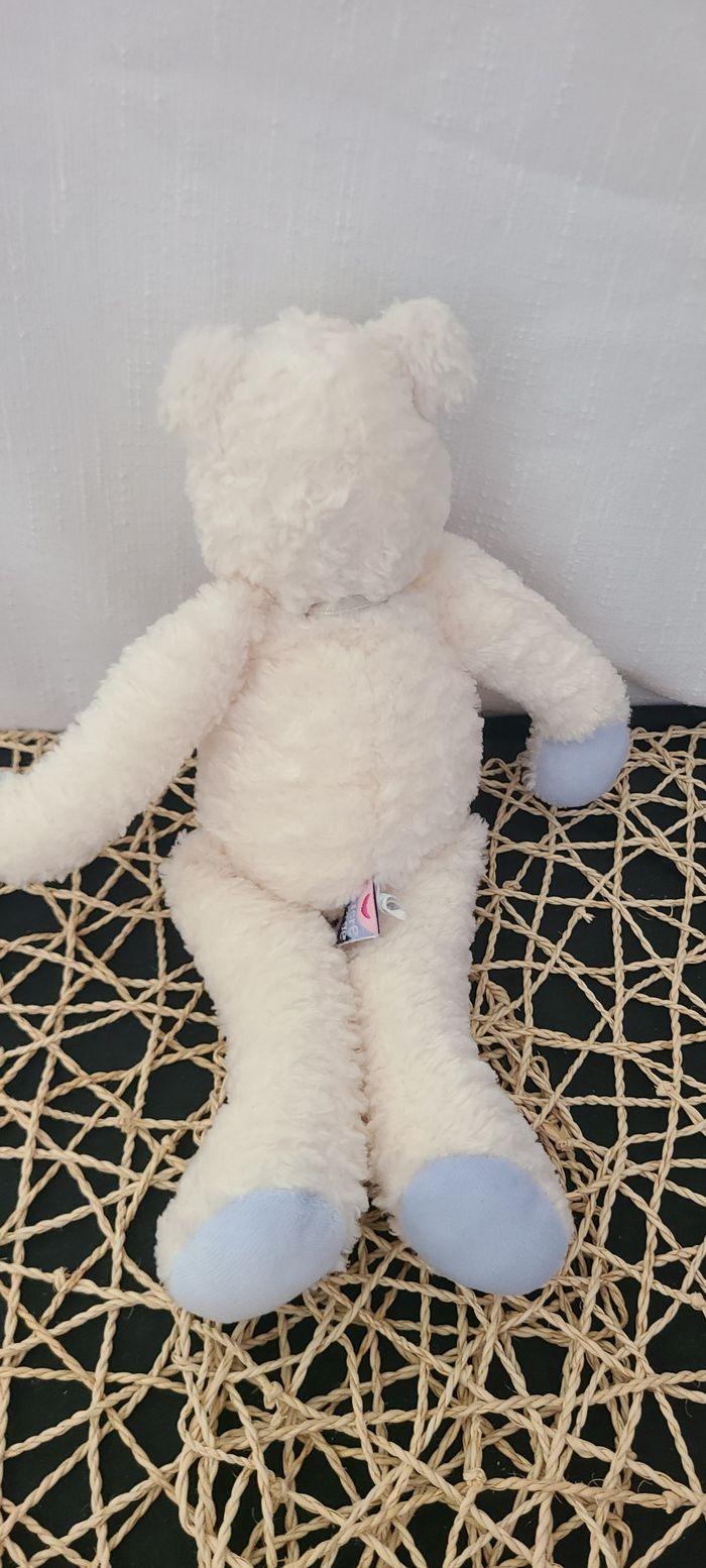 Doudou peluche ours blanc bleu Ruban satin - SUCRE D ORGE - photo numéro 1