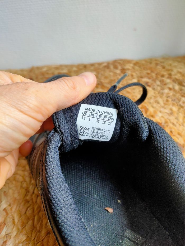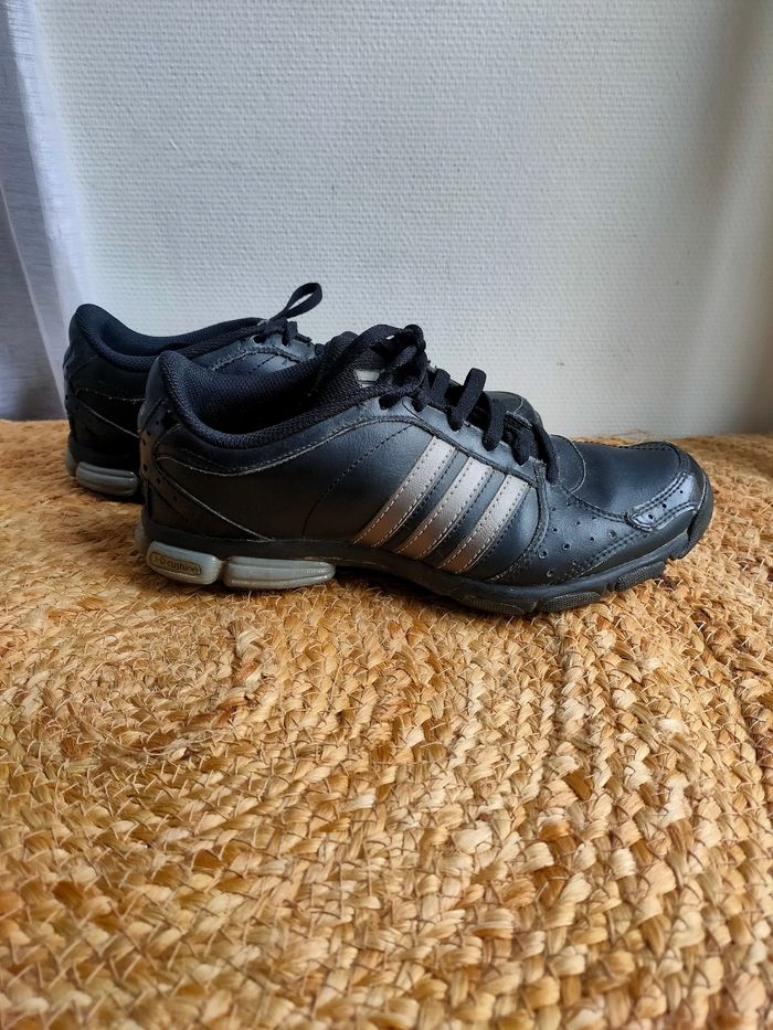 Basket coloris noir et gris, a lacets, marque Adidas, taille 38. elles sont en très bon état, ont été porté en alternance avec d'autres paires de chaussures. Prix ferme, PAS DE NÉGO !!!