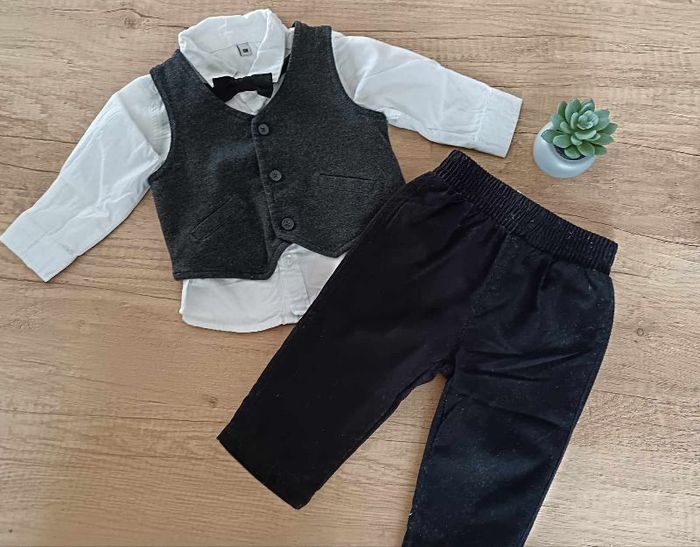 Ensemble de cérémonie. Une chemise, un noeud papillon, un bolero et un pantalon. En très bon état. #ensemble #cérémonie #chemise #noeudpapillon #noeud #papillon #bolero #mariage #bapteme #fete #pacs #T6_mois_bébé_emy70