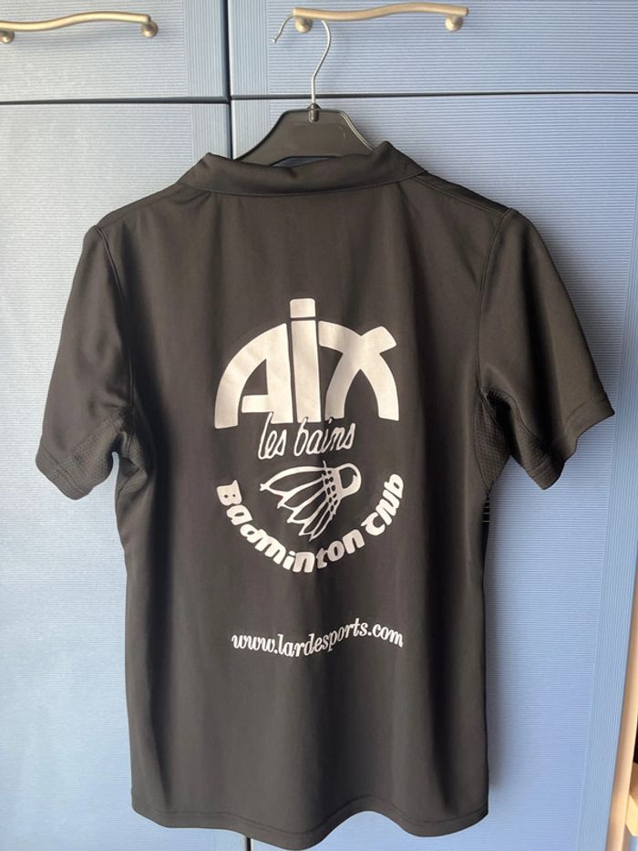 Polo de sport femme de la marque RSL imprimé Aix les Bains Badminton Club . Couleur noir et Jaune . Taille M . Très bon état.