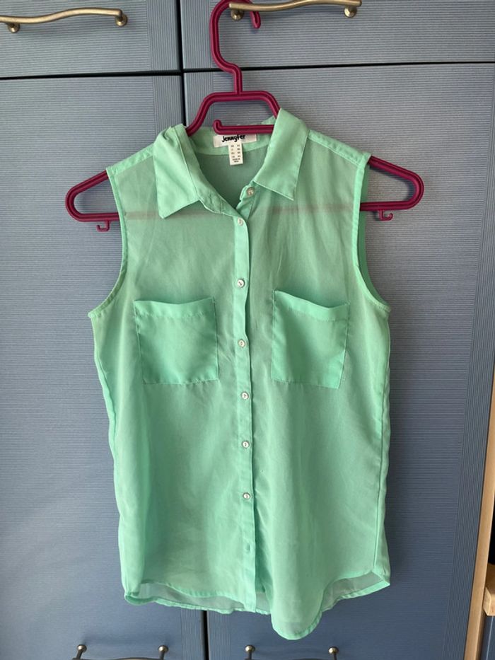 Chemisier sans manches de la marque Jennyfer . Taille XS . Couleur vert pomme .Translucide. Excellent état