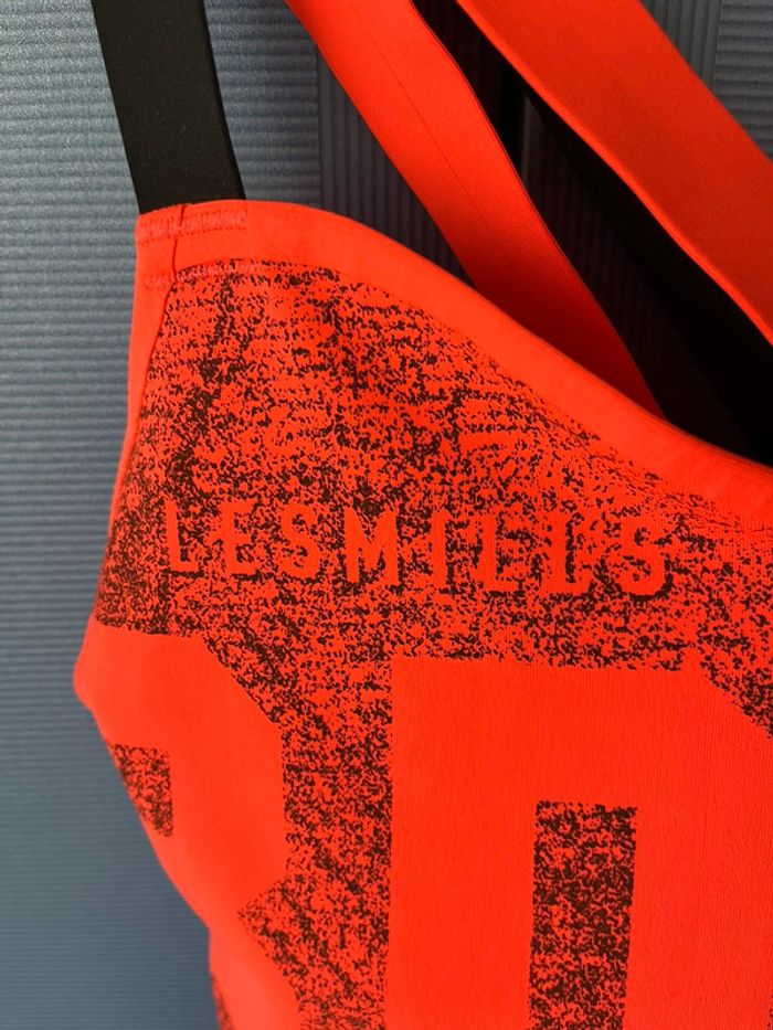 Tee shirt avec brassière intégrée de la marque Reebok . Taille XS , couleur orange. Excellent état . Les étiquettes de marque ont été coupées pour ne pas gêner au niveau de la poitrine voir la dernière photo