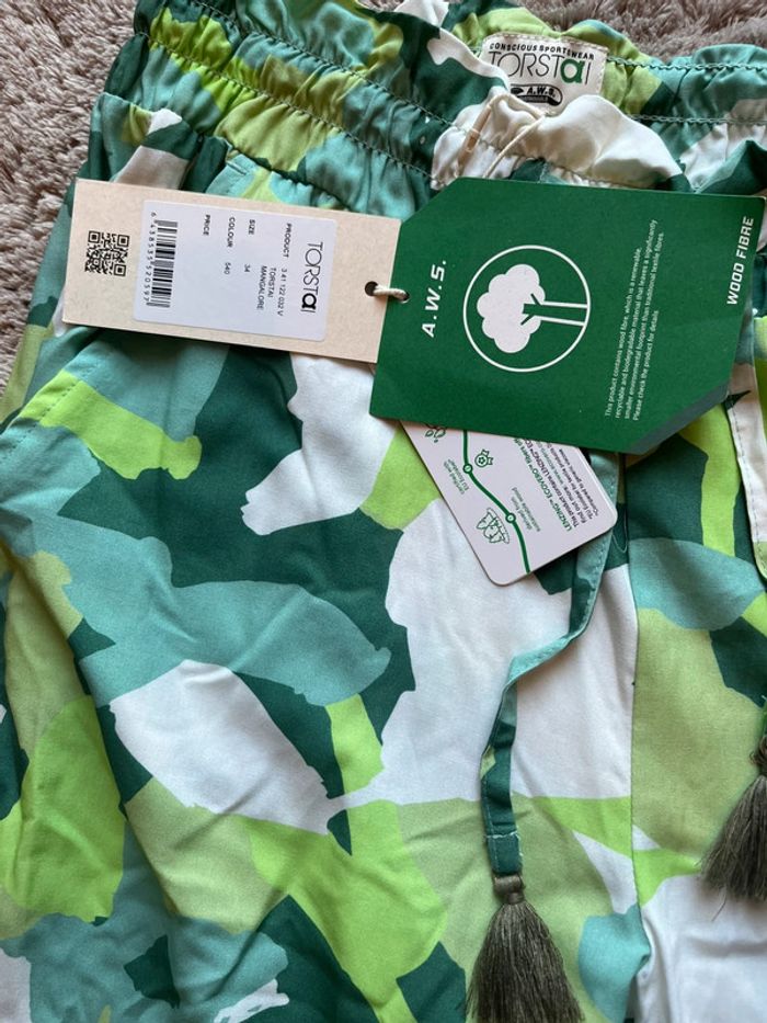 #pantalon d’été de la marque Torstai.#Taille 34 .# Vert et blanc#Neuf avec étiquette
