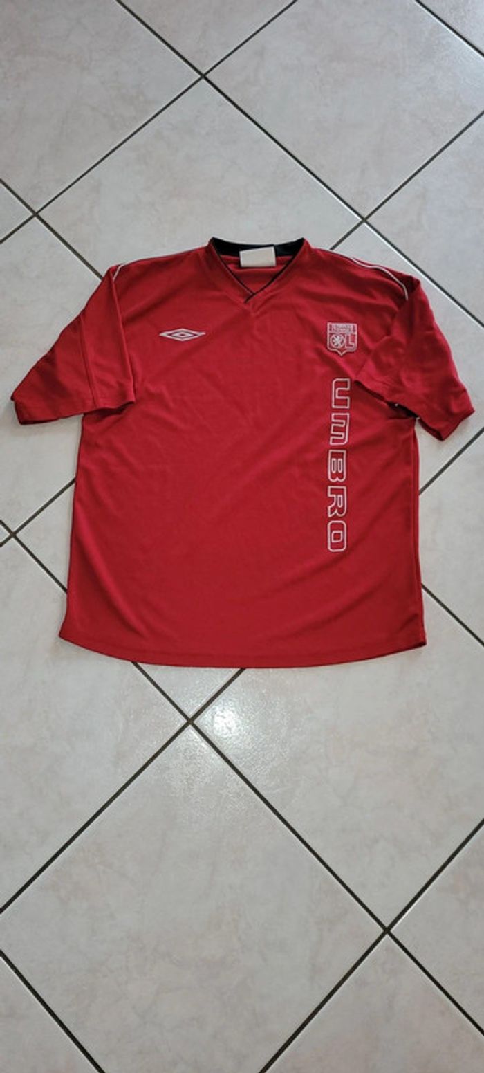 Maillot vintage Olympique Lyonnais marque Umbro. Maillot d'entraînement, couleur rouge. Taille 158 cm. Manches courtes. Saison 2004-2005 Étiquette d'authenticité Umbro. Envoi sous 48h