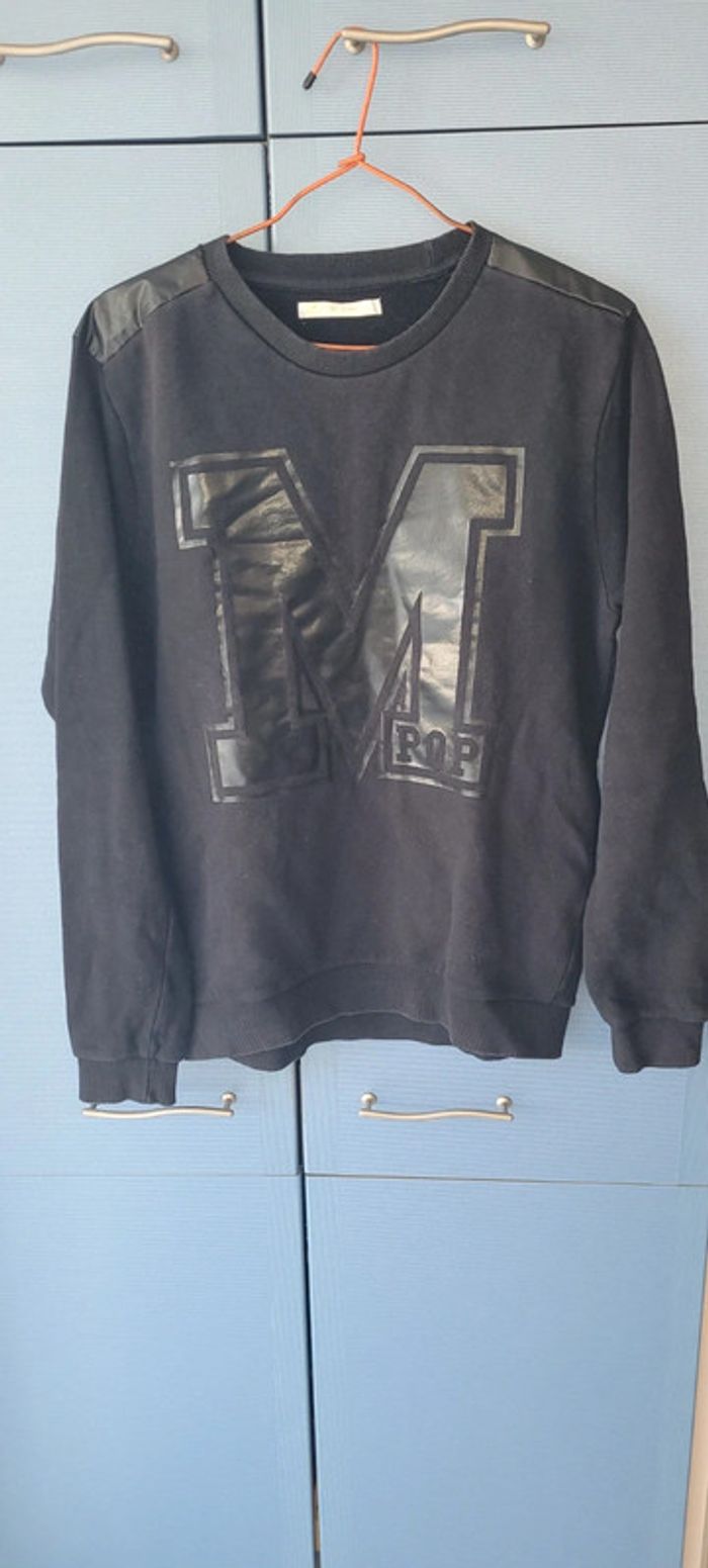 Tee-shirt imprimé avec un gros M sur le devant du Tee-shirt. Manches longues. Couleur noir