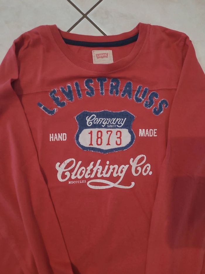 Tee-shirt imprimé Levi's. Couleur rouge. Taille 12 ans. Manches longues. Étiquette d'authenticité Levi's. Envoi sous 48h. Bon état.
