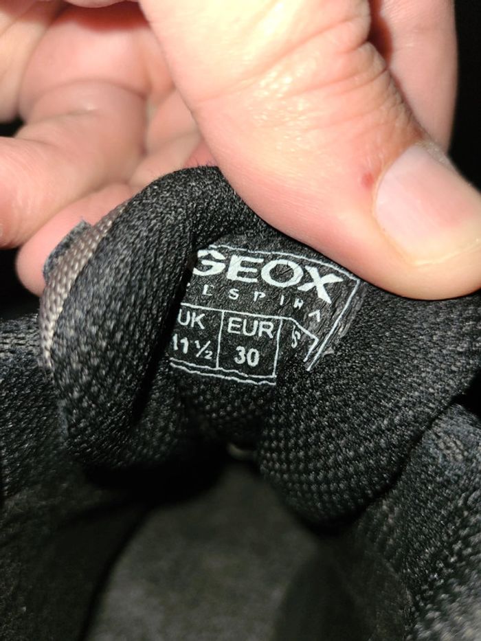 Chaussures montantes Geox. Pointure 30. Couleur gris et noir. Étiquette d'authenticité Geox. Envoi sous 48h.
