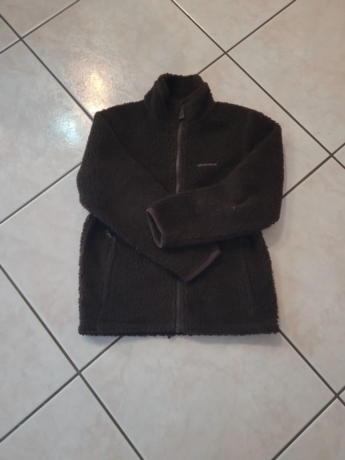 Polaire zippée marron Quechua. Couleur marron. Taille 8 ans. 2 poches sur le devant de la veste.