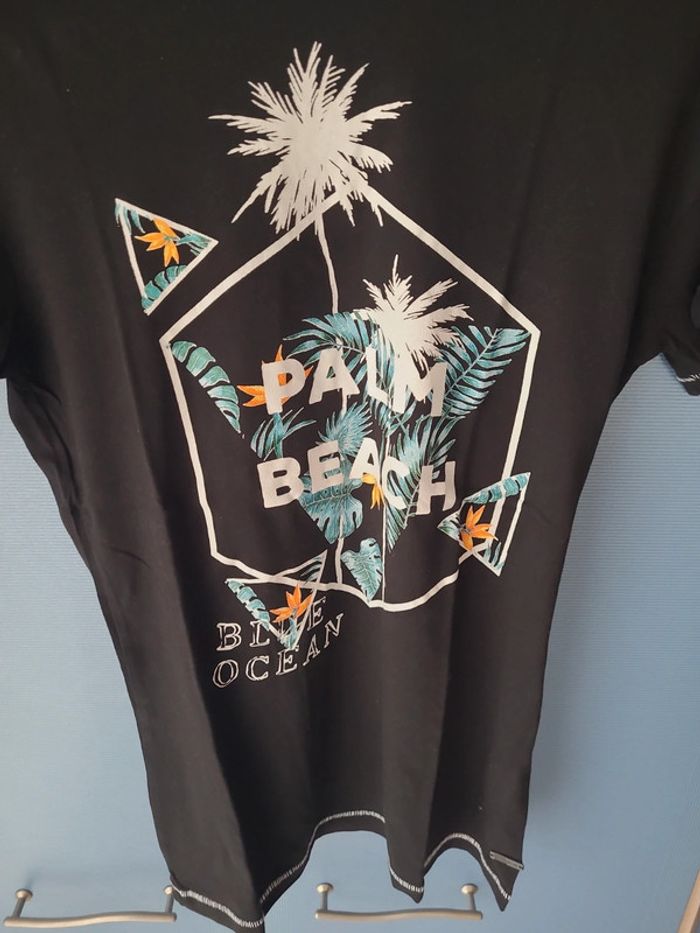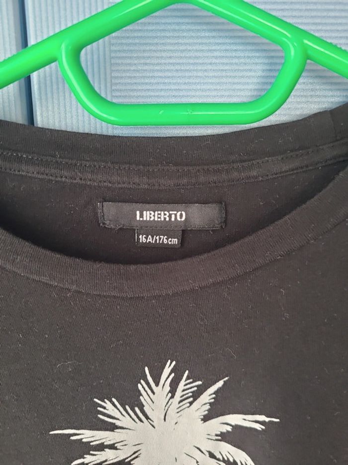 Tee-shirt imprimé Liberto. Noir impression Palm Beach, blue océan. Taille 16 ans. Manches courtes. Très bon état, porté une fois.