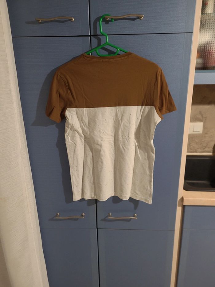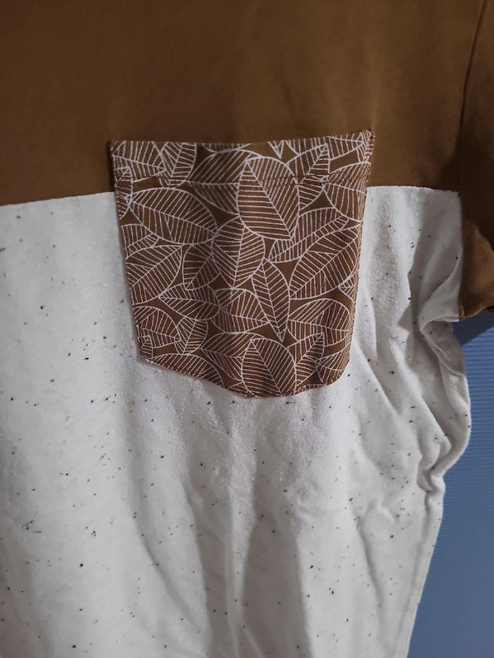 Tee-shirt imprimé Bizzbee. Couleur marron et blanc tacheté. Taille S enfant, manches courtes