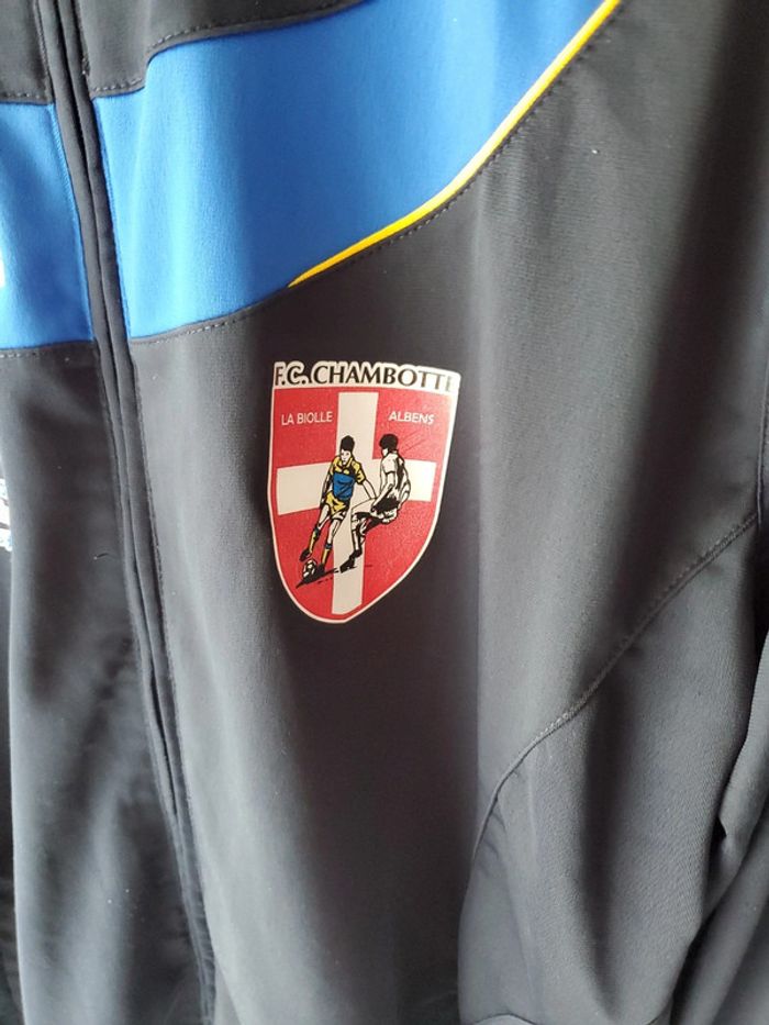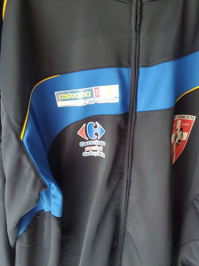 Veste de survêtement Jako . Couleur bleu nuit. Taille Xl. Marquage Jako un peu abîmé sur manche gauche, veste en très bon état autrement.
