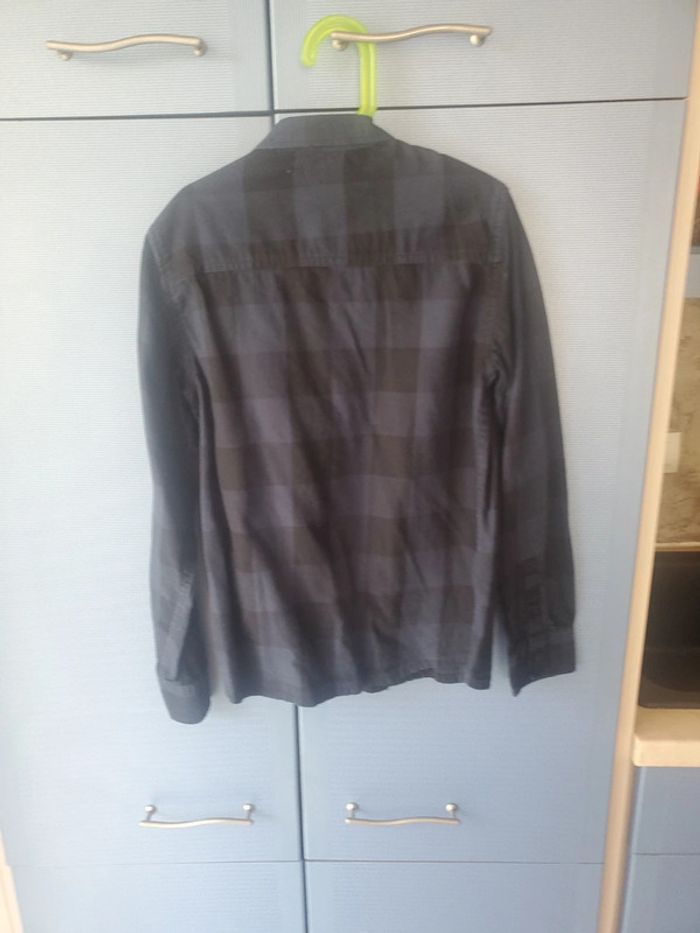 Chemise à carreaux noir et bleu Liberto , taille 12, manches longues . 100% coton