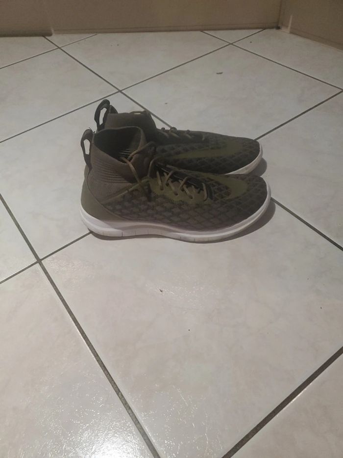 Baskets montants Nike en toile. Vert Kaki. Taille 42. Semelle blanche donc facilement salissante voir photo 4