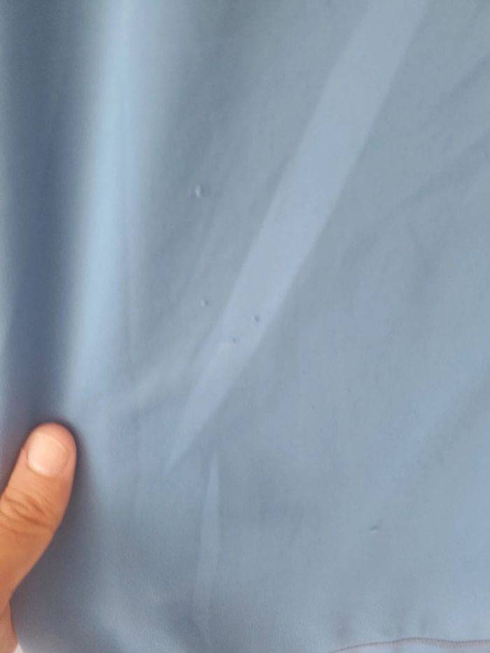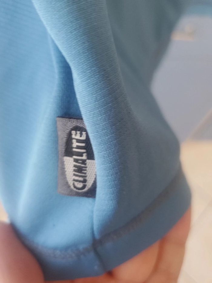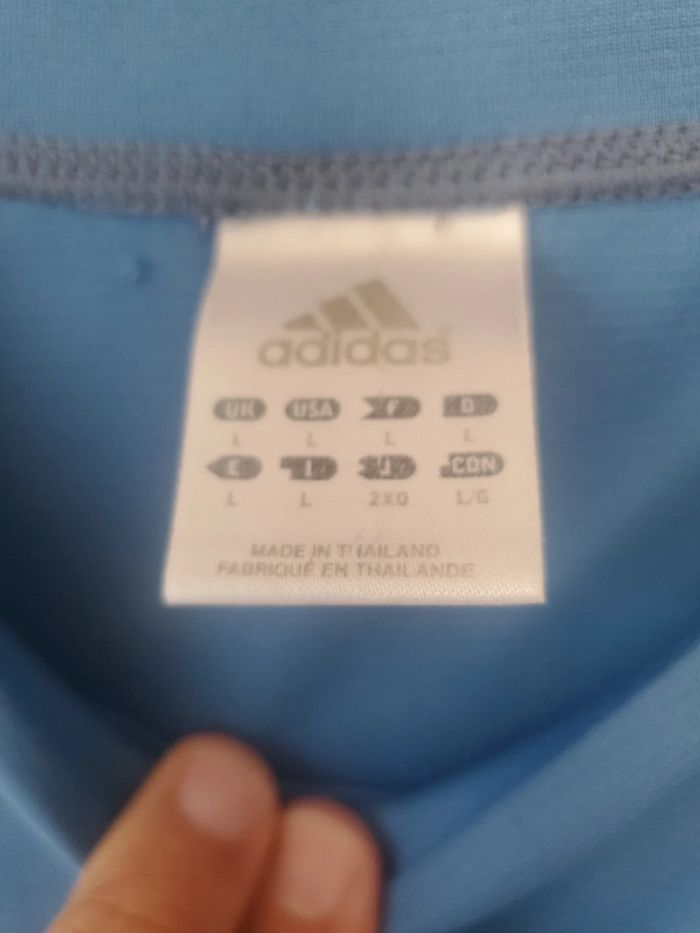 Tee-shirt Adidas climalite, manches courtes, taille L. Plusieurs mailles ont sautées voir photo 5,6,7.