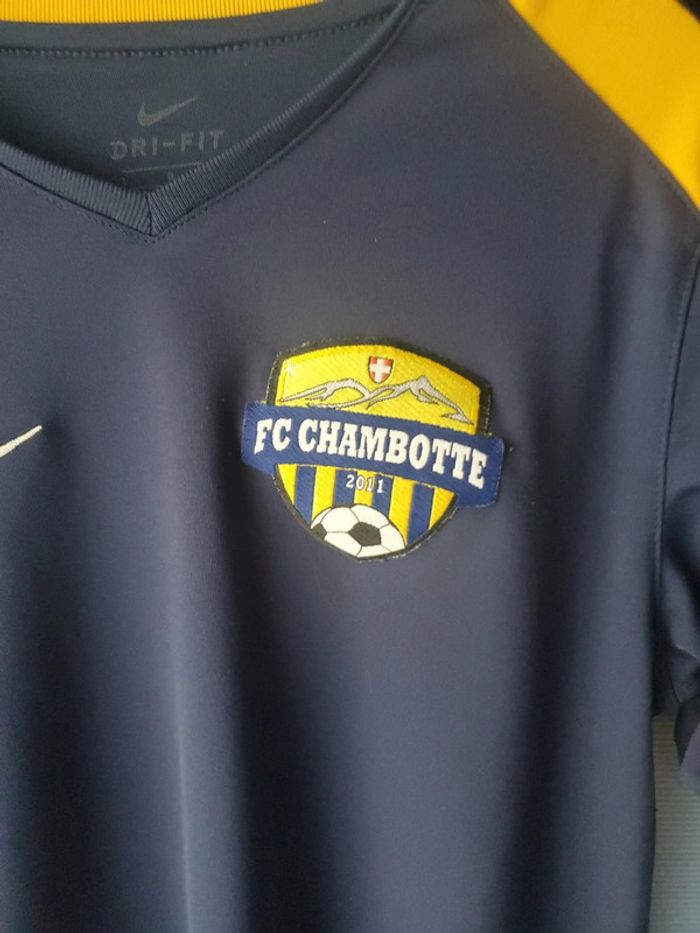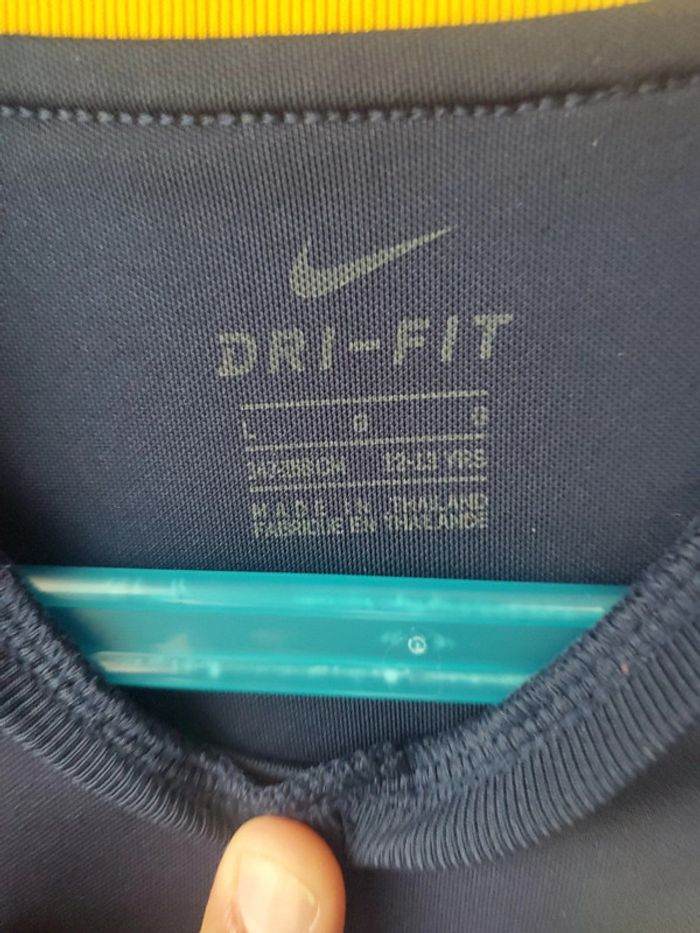 T-shirt de sport Nike 12-13 ans , couleur bleu marine et orange. De petits accrocs dans le dos , voire derrière photo.