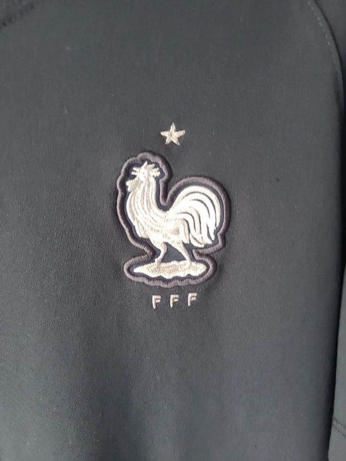 Maillot Équipe de France enfant Nike. Taille Xl enfant. Bleu marine, manches courtes, une étoile de champion du monde. Quelques mailles tirées ( très minimes)sur l'avant voir photos