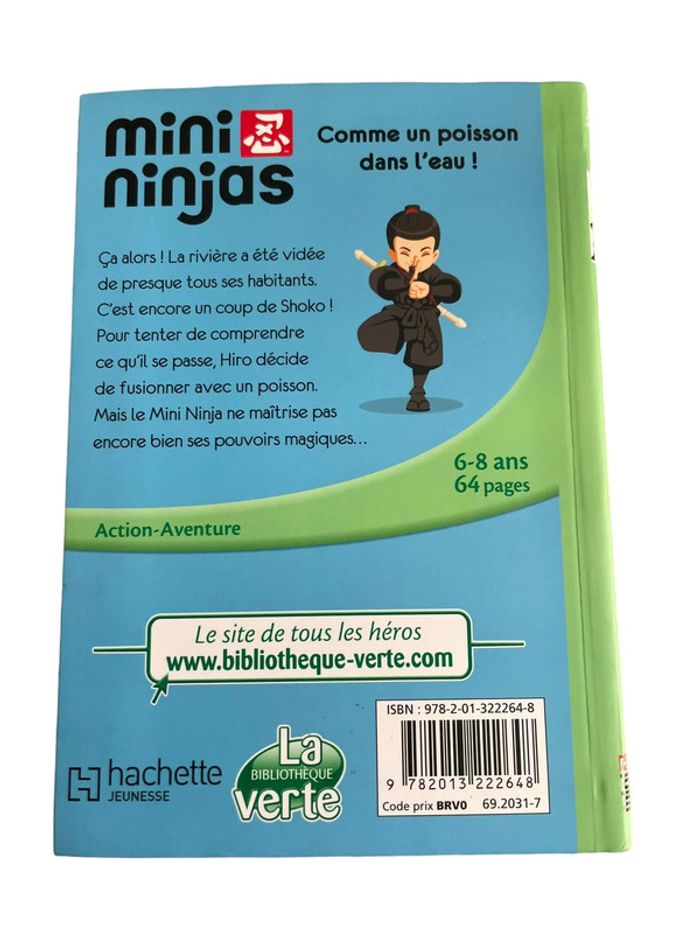 Livre Bibliothèque verte Mini Ninjas comme un poisson dans l’eau N•2 Hachette