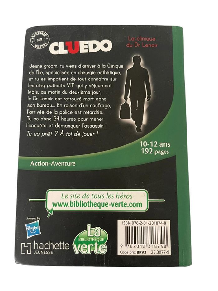 Livre Bibliothèque verte Cluedo la clinique du Dr.Lenoir Hachette