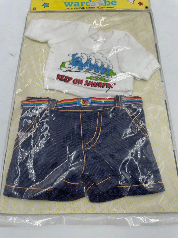 Tenue Jeans & Tshirt pour schtroumpf Floppy N•640 pour peluche Peyo de 1983 neuf - photo numéro 2