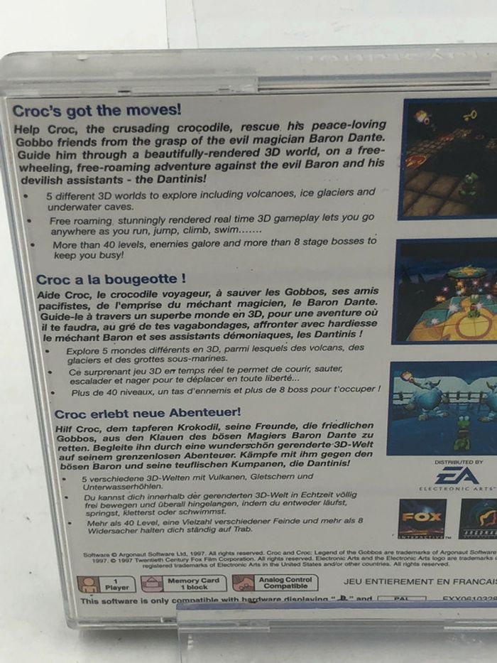 Jeu vidéo Croc Legends Of the Gobbos sur console Playstation 1 Jeu complet avec notice Le jeu fonctionne parfaitement Lot sur demande ✅ Articles similaires de mon dressing avec les liens ci-dessous ⬇️ #JeuxVideosbrocaz29 #Playstationbrocaz29 #Playstation1brocaz29 #Crocbrocaz29