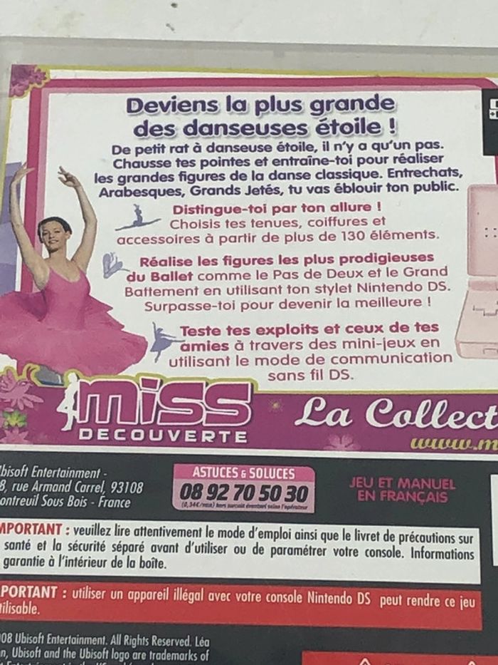 Jeu vidéo Léa Passion Danseuse étoile sur console Nintendo Ds Jeu complet avec notice Le jeu fonctionne parfaitement Lot sur demande ✅ Articles similaires de mon dressing avec les liens ci-dessous ⬇️ #JeuxVideosbrocaz29 #Nintendobrocaz29 #NintendoDsbrocaz29 #Nintendo3Dsbrocaz29