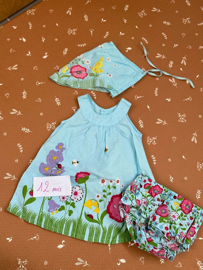 Robe + bloomer + fichu Très bon état 12 mois H&M