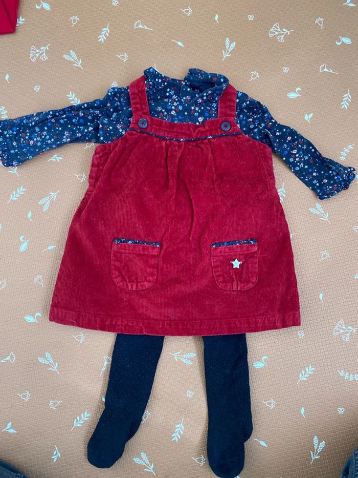 Robe + teeshirt col Claudine + collants 9 mois - photo numéro 1