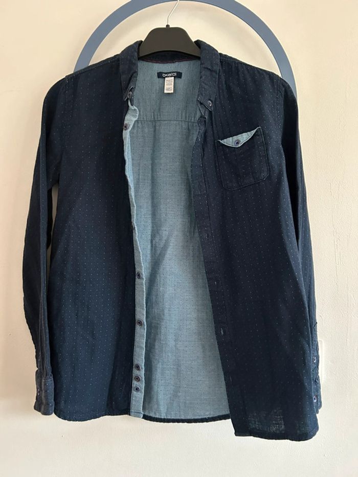 Chemise en tubique effet plumetis bleue garçon 12 ans Okaïdi Comme neuve