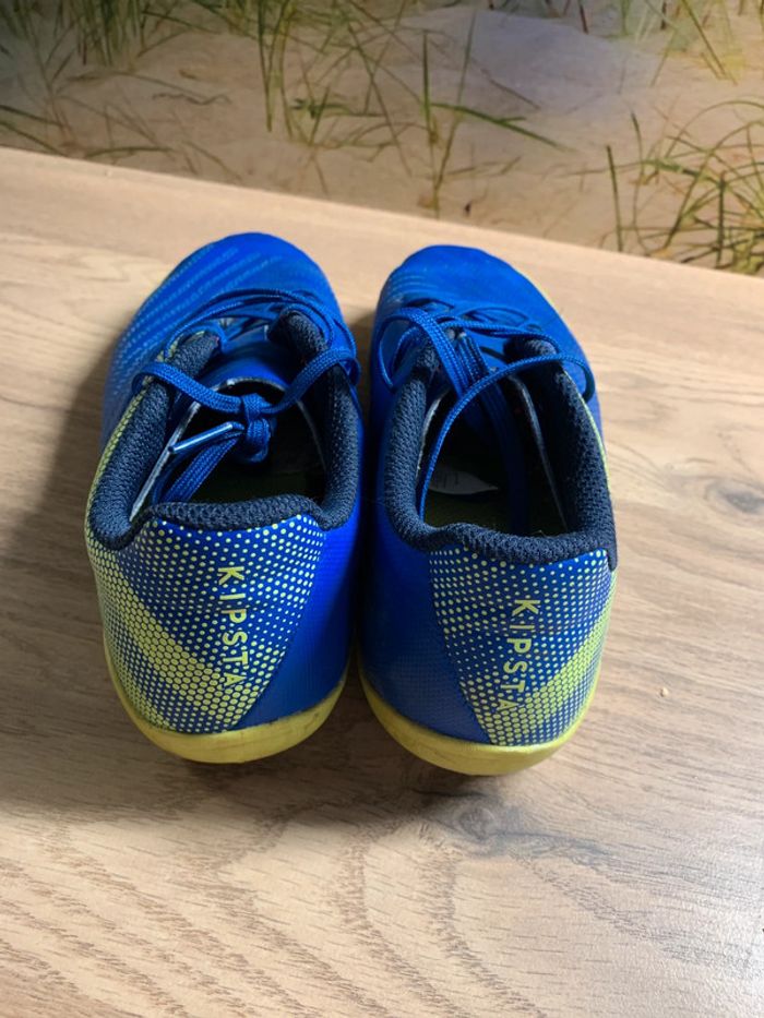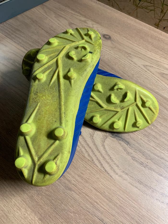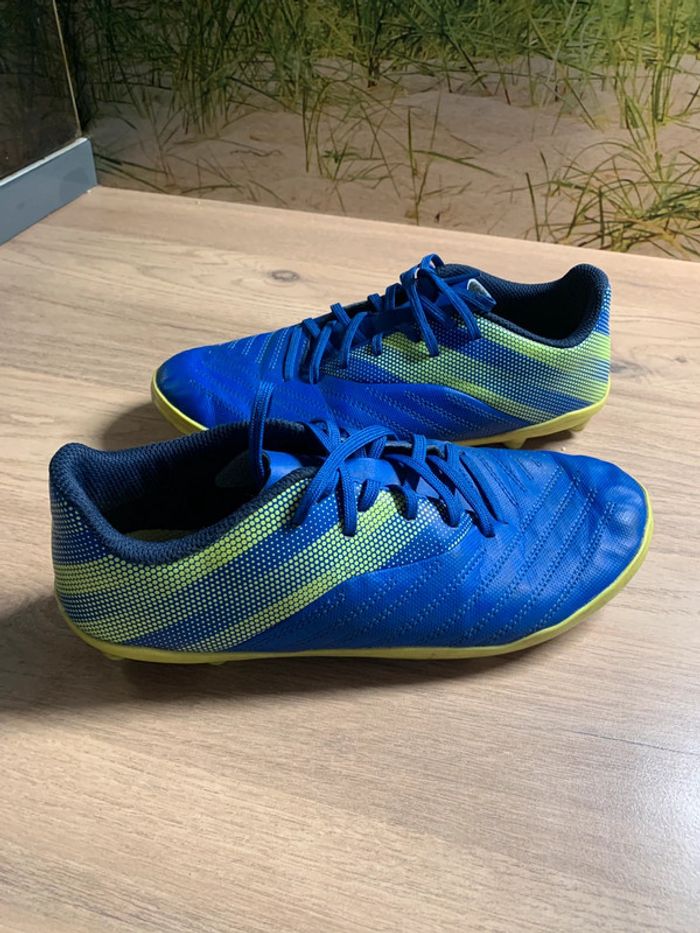 Chaussures football crampons bleu/jaune à lacets taille 38