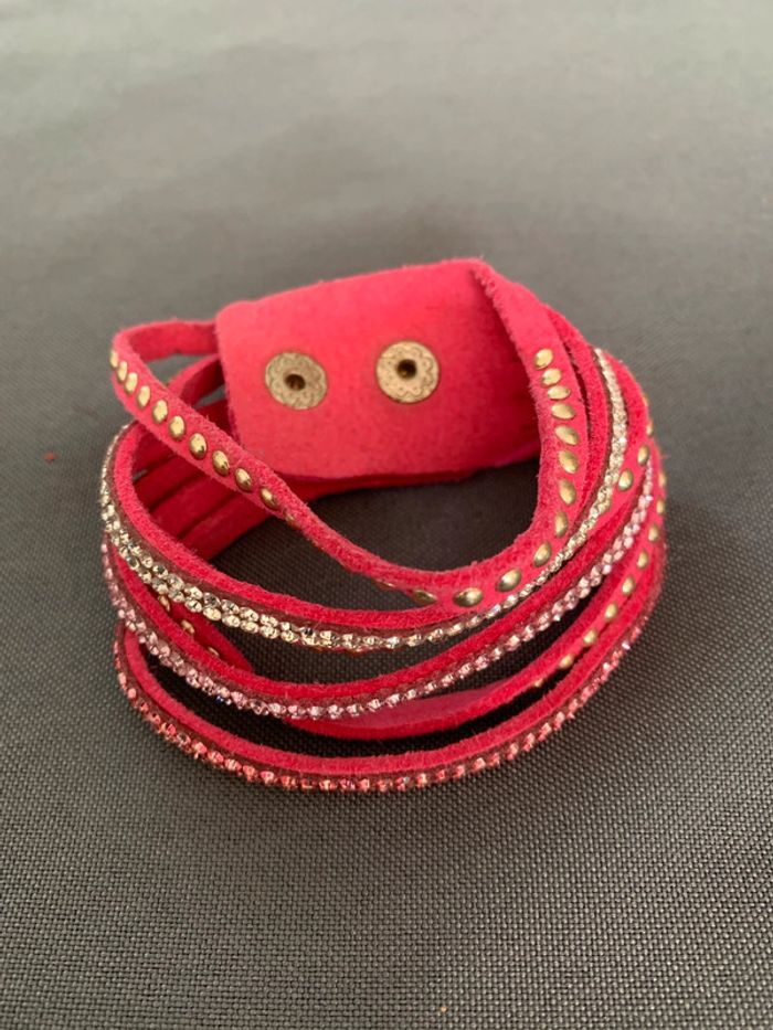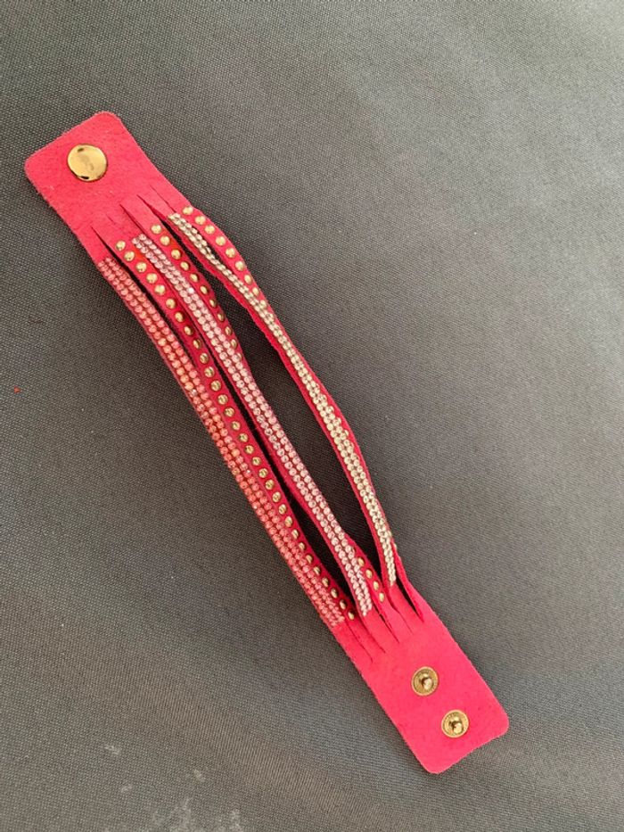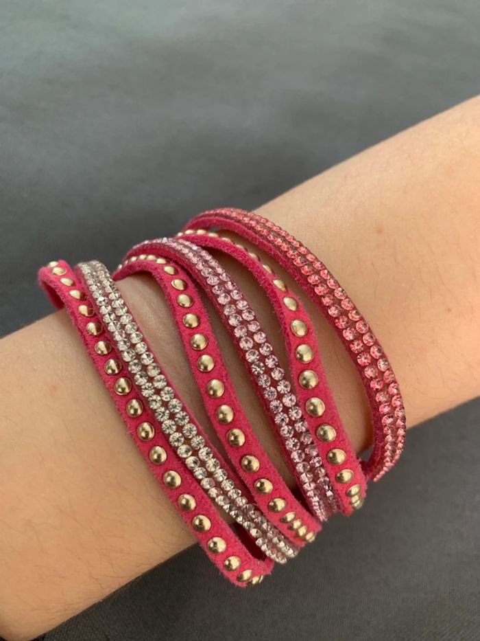 Bracelet rose strass fermeture à pression ~20cm - photo numéro 1