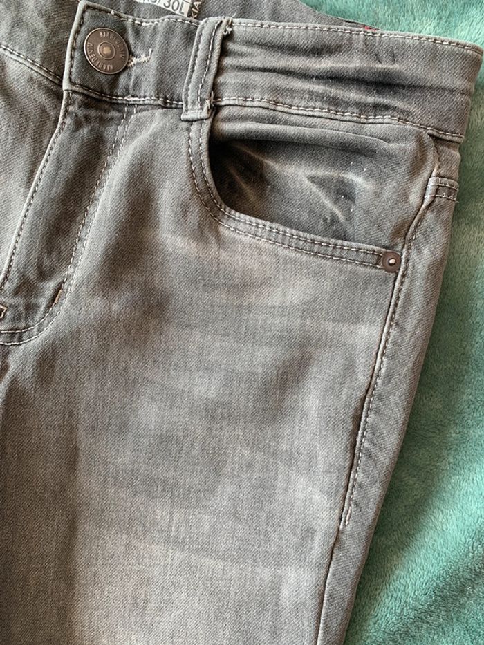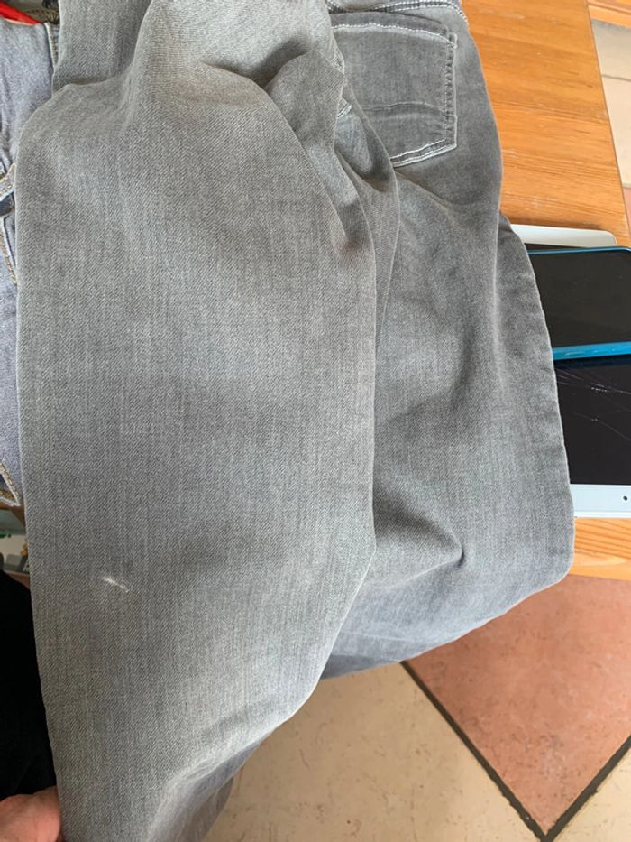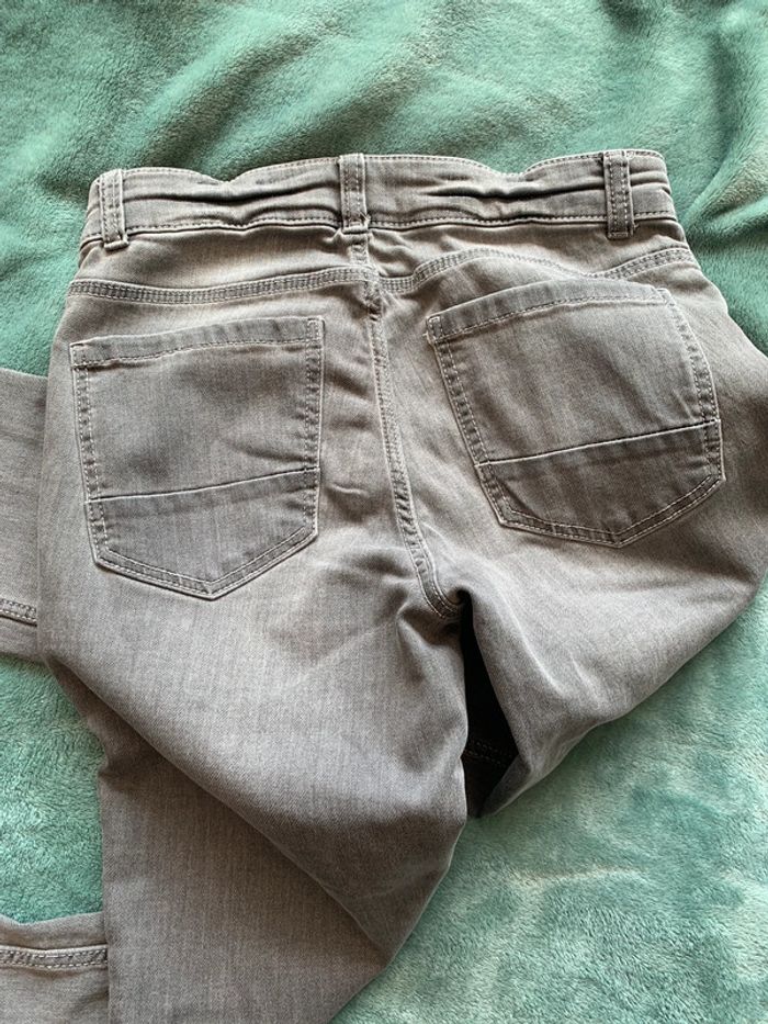 Jean gris Kiabi skinny XS avec réglage ceinture En très bon état sauf petite trace derrière la jambe voir dernière photo