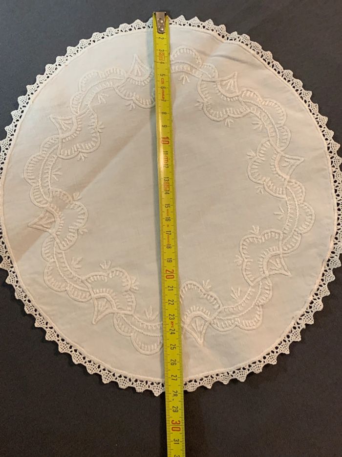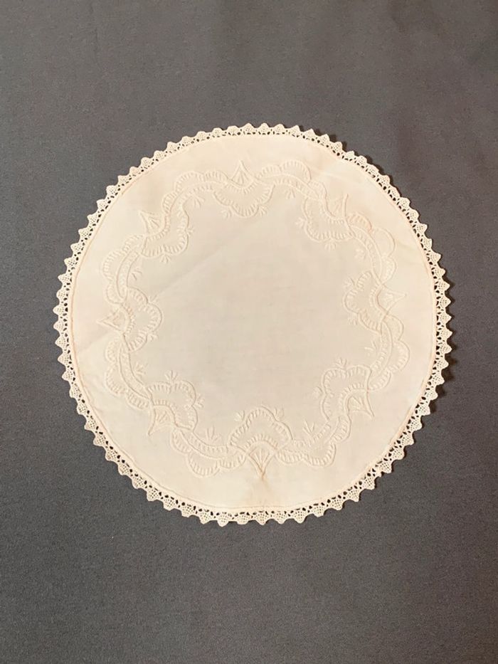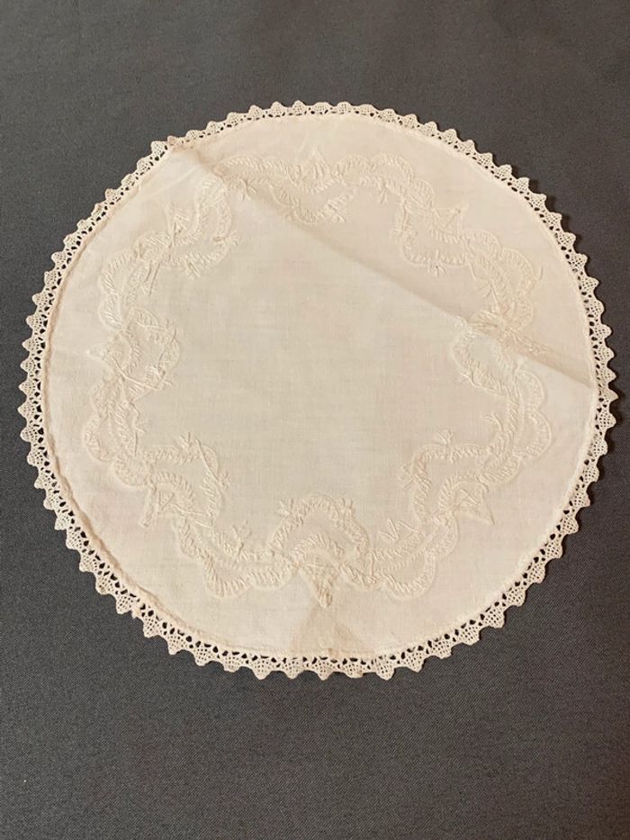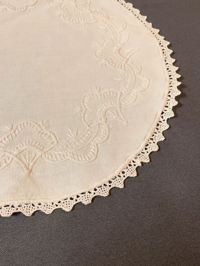 Ancien napperon ovale brodé et dentelle 28cm - photo numéro 4