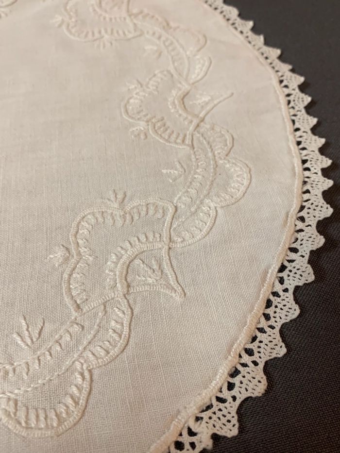 Ancien napperon ovale brodé et dentelle 28cm - photo numéro 6