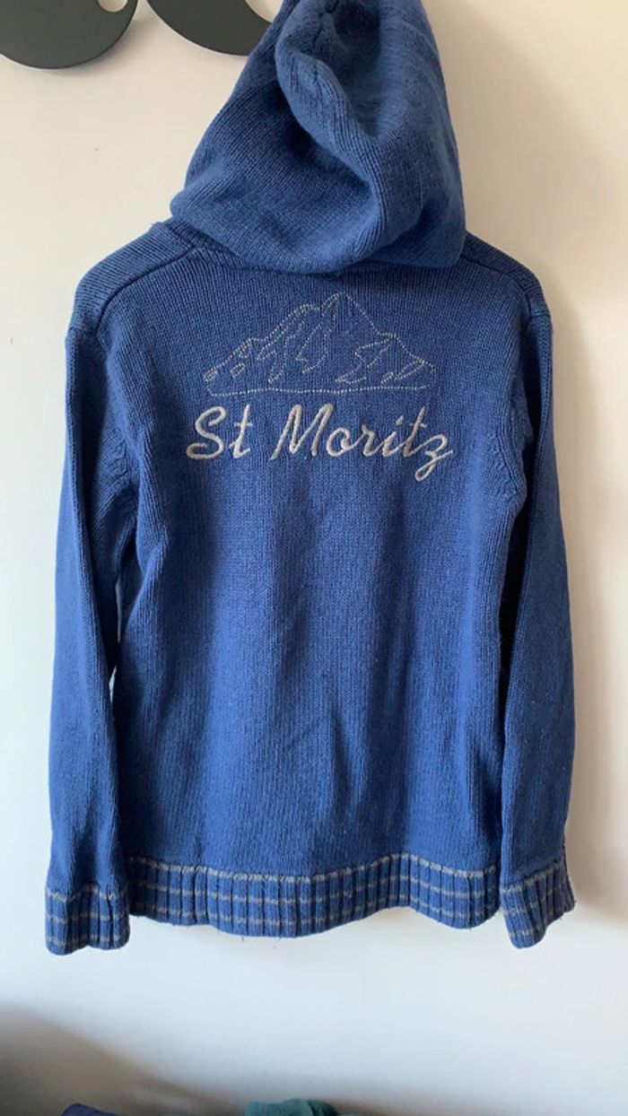 Gros pull en laine capuche bleu St Moritz 12 ans - photo numéro 1